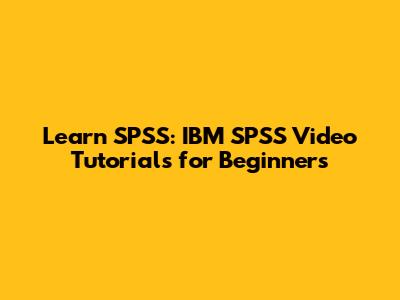 Learn SPSS: IBM SPSS Video Tutorials For Beginners