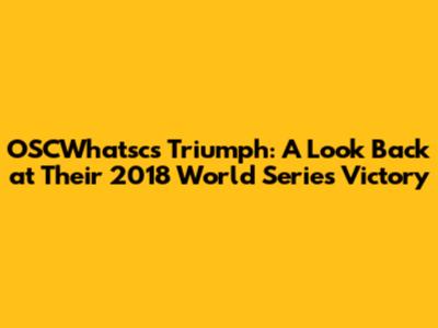 So there you have it, guys! The unforgettable story of the OSCWhatsc's 2018 World Series victory. It was a season of incredible highs, nail-biting moments, and a championship that will be remembered forever. Remember the heart, the grit, and the teamwork that defined their journey. Thanks for joining me in celebrating the OSCWhatsc! Until next time, keep the spirit of the game alive! Go team!